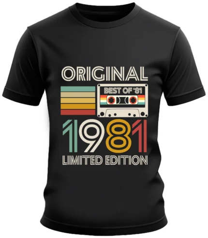 Zakres cen: od 50,00zł do 55,00złKoszulka męska prezent na urodziny rocznik 1981 kaseta