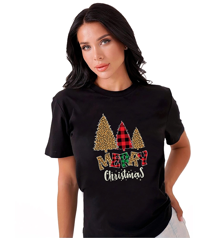 Koszulka damska czarna prostego kroju ze świątecznym nadrukiem