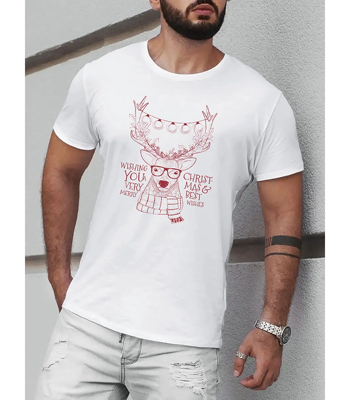 Koszulka męska biała o prostym kroju ze świątecznym nadrukiem